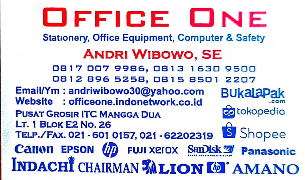 Temukan berbagai pilihan produk unggulan kami melalui website ini atau kunjungi toko fisik kami di ITC Mangga Dua. Hubungi kami di 08170079986 untuk informasi lebih lanjut. Terima kasih atas kepercayaan Anda memilih Office One Stationery sebagai mitra perlengkapan kantor terpercaya.